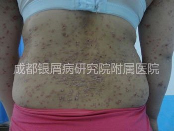 治疗前,小娟全身出现红色点状皮损伴鳞屑